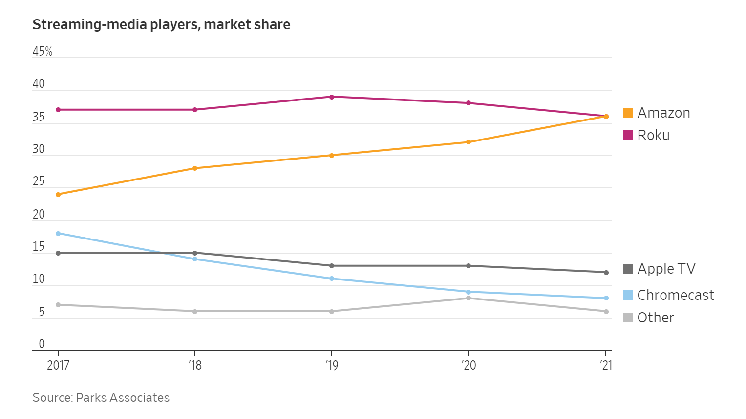 Trong những năm gần đây, Amazon đã đào sâu hơn vào đời sống hàng ngày của người dân Mỹ qua dịch vụ streaming và thiết bị thông minh, địa hạt mà đế chế này nắm được một phần miếng bánh dù cạnh tranh rất khốc liệt. Trợ lý Alexa và thiết bị streaming Fire TV là các sản phẩm bán chạy trên trang web của Amazon, nhờ các khoản giảm giá thường xuyên của mình.
