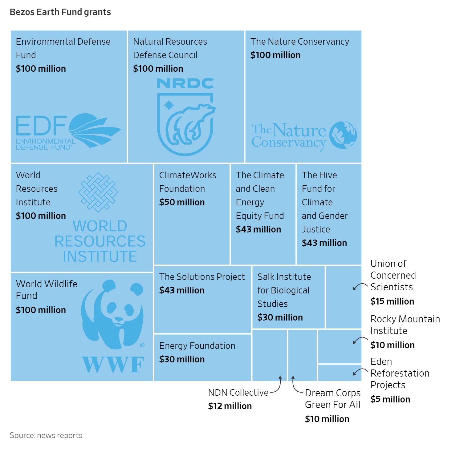 Trong tháng 02/2020, Bezos thông báo sẽ đóng góp 10 tỷ $ cho cuộc chiến chống biến đổi khí hậu thông qua sáng kiến Bezos Earth Fund. Khoản tiền đầu tiên trị giá 791 triệu $ được công bố trong tháng 11/2020. Số tiền này được đổ vào một số dự án như nổi bật như ClimateWorks Foundation (50 triệu $), The Climate and Clean Energy Equity Fund (43 triệu $), The Hive Fund for Climate and Gender Justice (43 triệu $) và The Solutions Project (43 triệu $).